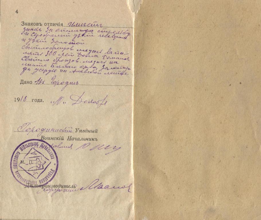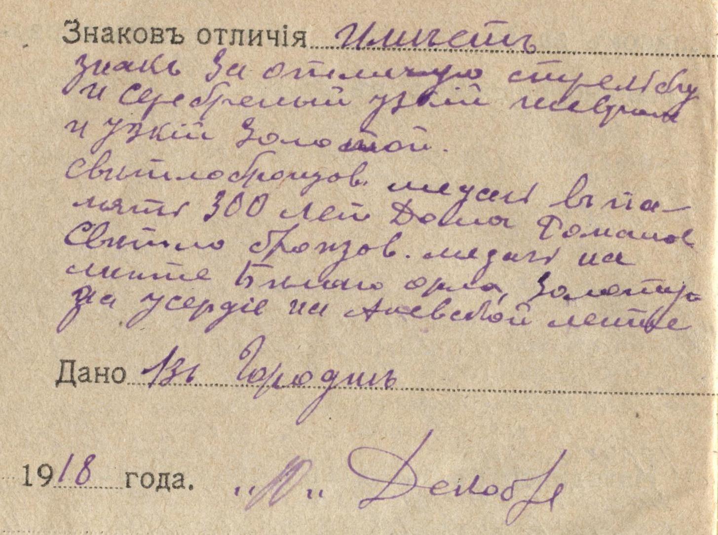 - Золотая медаль за усердие на Анненской ленте