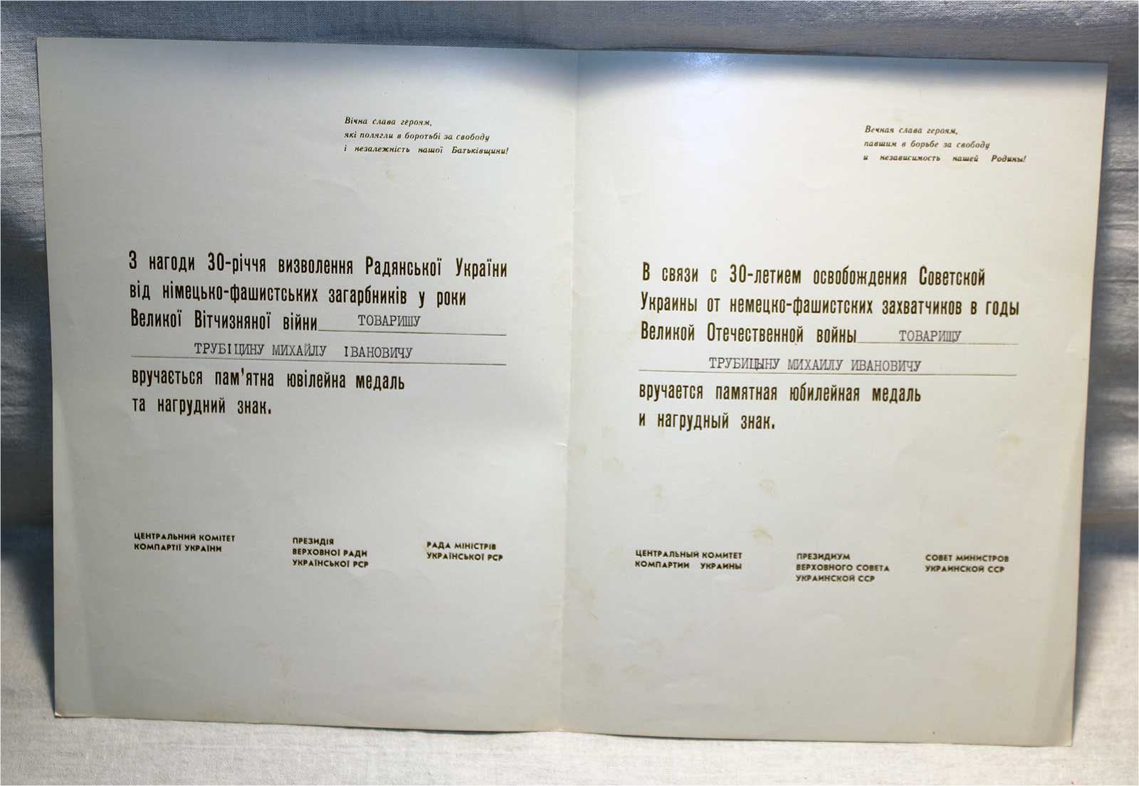Большая Грамота ГСС выд.1959г с архивом фото, грамот, листовок и благодарностей!