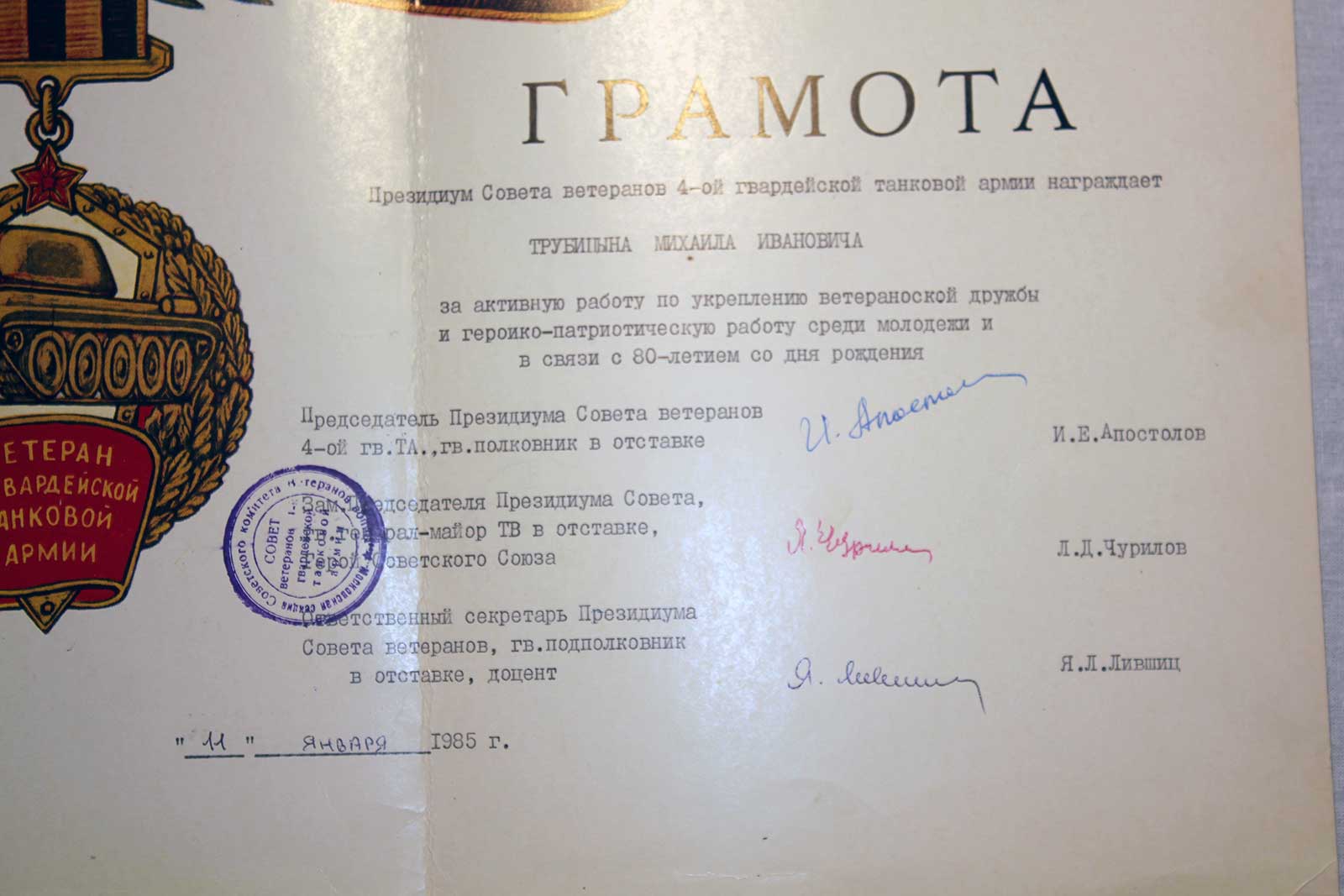 3. Орденом Отечественной войны 1-й степени (06.04.85)