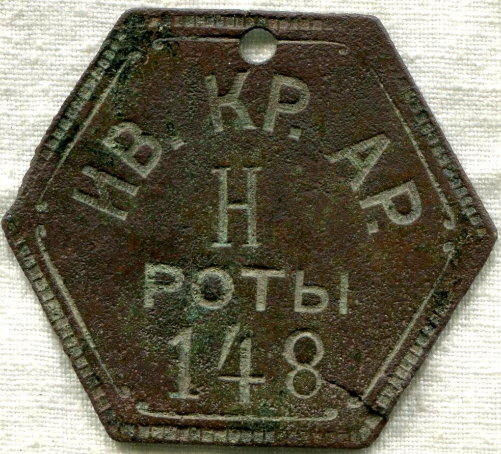 личный знак нижнего чина нестроевой роты Ивангородской Крепостной Артиллерии.