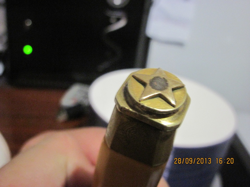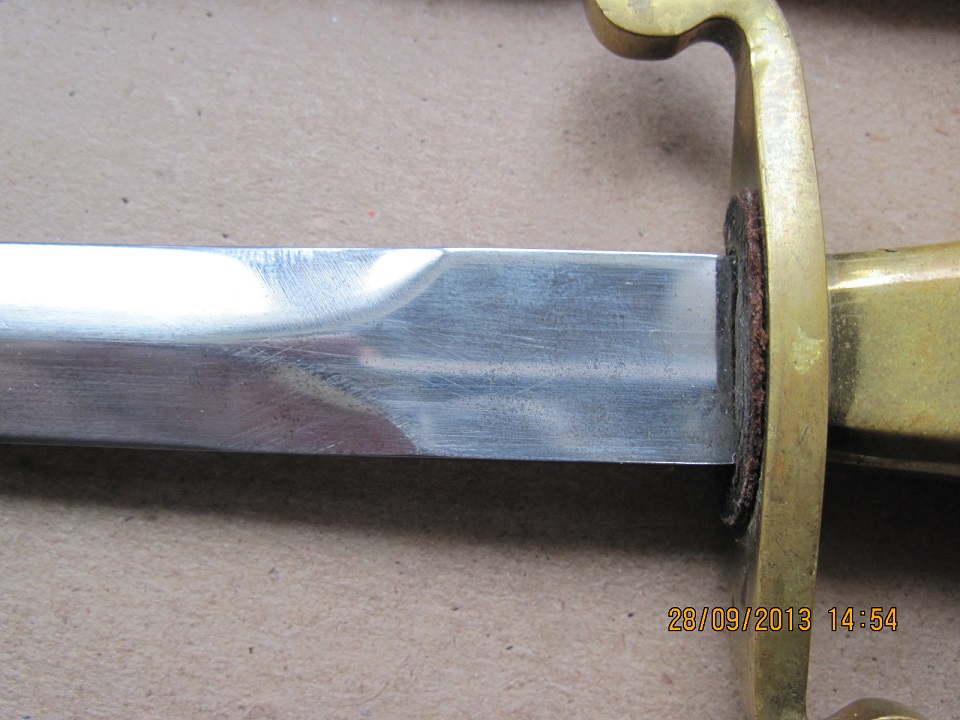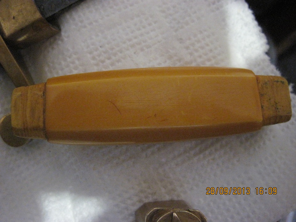 КАКОЕ ТО ПЯТНО.(ВОЗМОЖНО ХОЗЯИН МЕТИЛ.НО НЕ ЗАТРОНУТ МЕТАЛ.)НА РУЧКЕ ОТ ЛЕЗВИЯ ШТАМПЫ "З" и " Р" ПРОПИСНЫЕ.