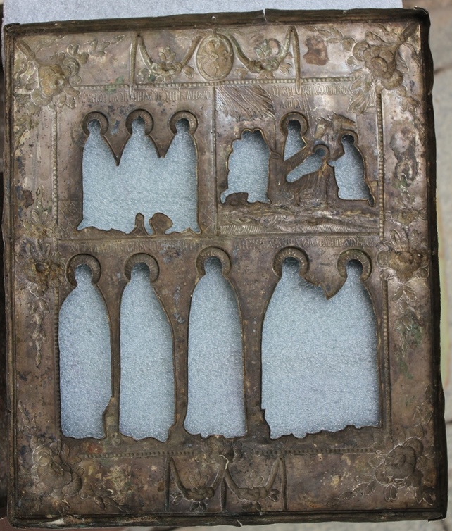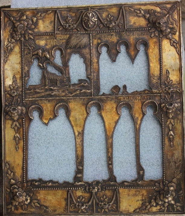 Письмо новое на родной доске, от старого письма, были только силуэты. Оклад 84 пробы, казанское клеймо, мастер по Постниковой тоже казанский, неизвестный.Вес оклада 330грамм.Размер иконы 27 х 32 см.
