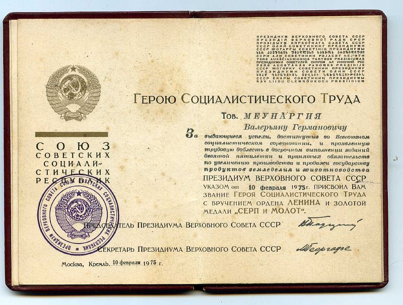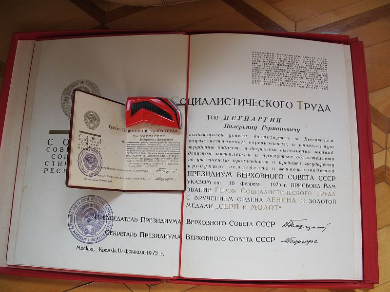 Родной сбор.За чай! Интересная и редкая профессия! Меунаргия Валерьяну  Германовичу — механику-водителю чае-сборочной машины Ингирского чаеводческого совхоза Зугдидского района Грузинской ССР. В последствии депутат Верховного Совета 9 созыва.