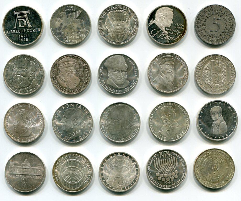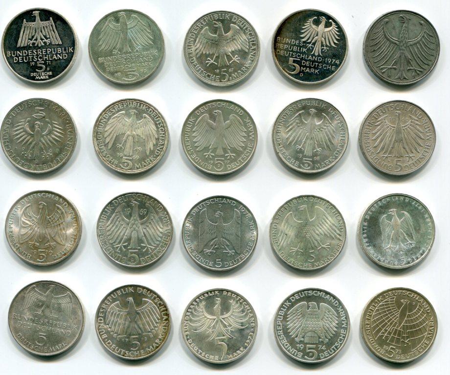 20 серебряных монет ФРГ.