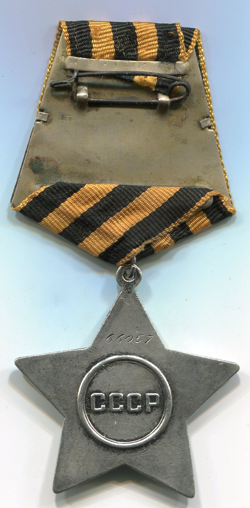 Состояние Славы приличное, эмали - царапинки да пара-тройка чешуек. Две тёмные полосы на верхнем луче - непонятно, что такое... Промзвено раскушено, носила, видимо, на общей колодке.