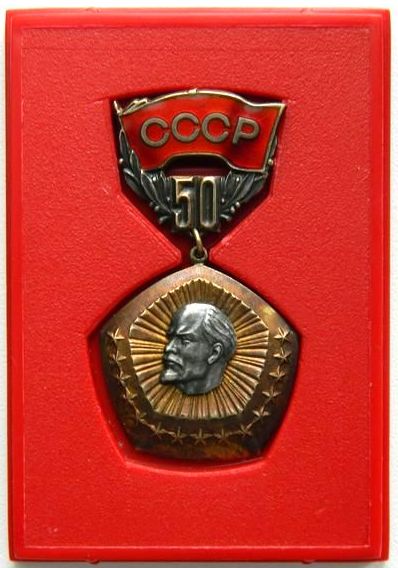 Знак"50 лет образования СОЮЗА ССР" (ММД,серебро)