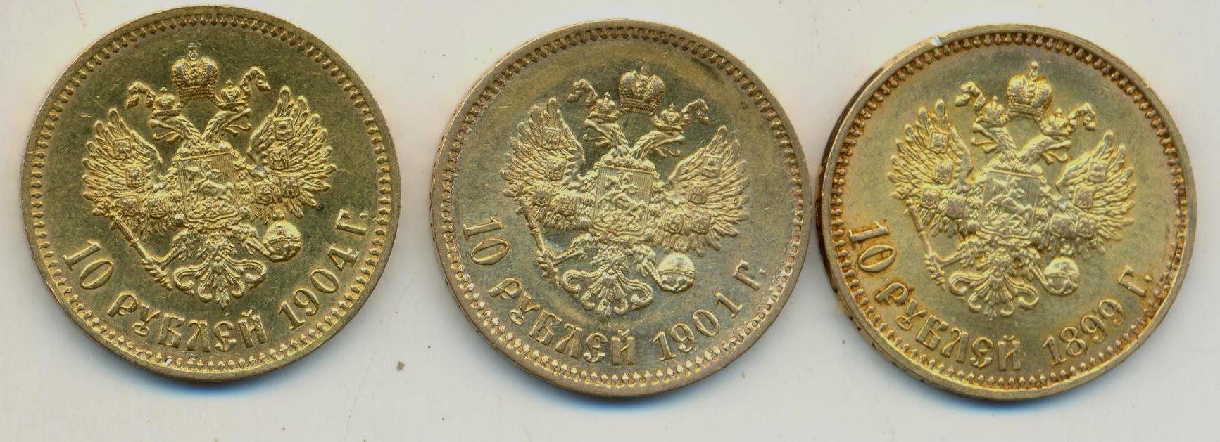 Прекрасное состояние,практически все - с штемпельным блеском.Левая 1903 года в красивейшем красном (червонном) цвете. Вес и гурты - в порядке. Предлагаем от 590 с доставкой до Москвы.