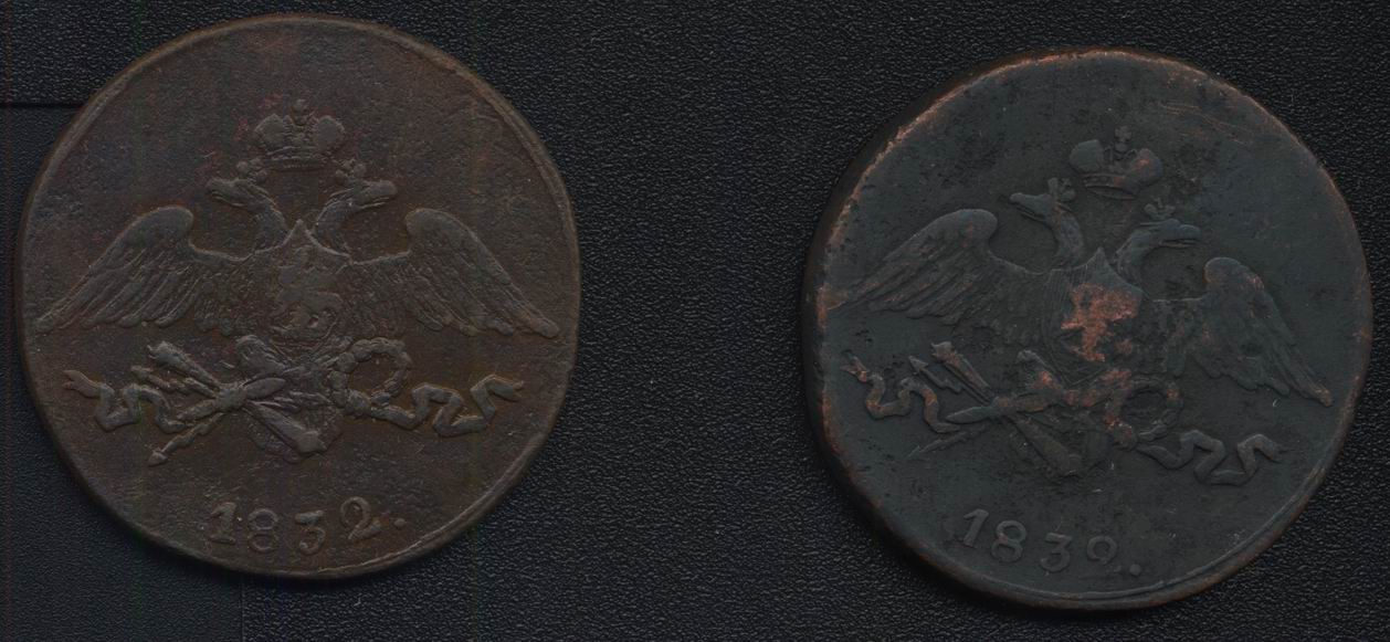 Думаю, что в паре они минимум 400 рублей стоят. Который черный - патина новая, могу отмыть. Если сканы слабоваты- кому надо на почту скину крупнее.