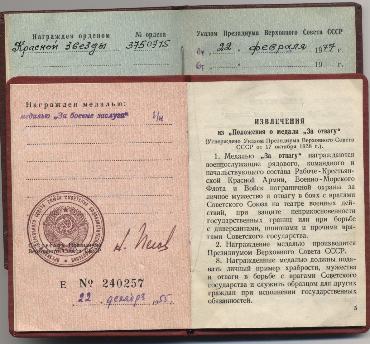 Красного Знамени, Суворова, Кутузова, Богдана Хмельницкого, Александра Невского, Ушакова, Нахимова, Отечественной Войны, Красной Звезды, Славы, За Службу Родине в ВС СССР