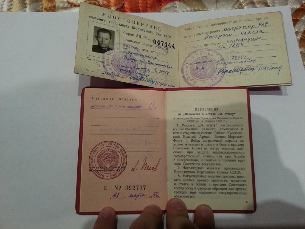 Принесли вот такой комплект: БКЗ № 546 тыс..ЗБЗ на Пеговском доке,Граница нейзильбер,юбил.+ док на офицерскую классность.Орденскую и док на Границу ищут.Найдут предложу победителю!Сохран,патина отличные.По РФ+почта.Предложите!