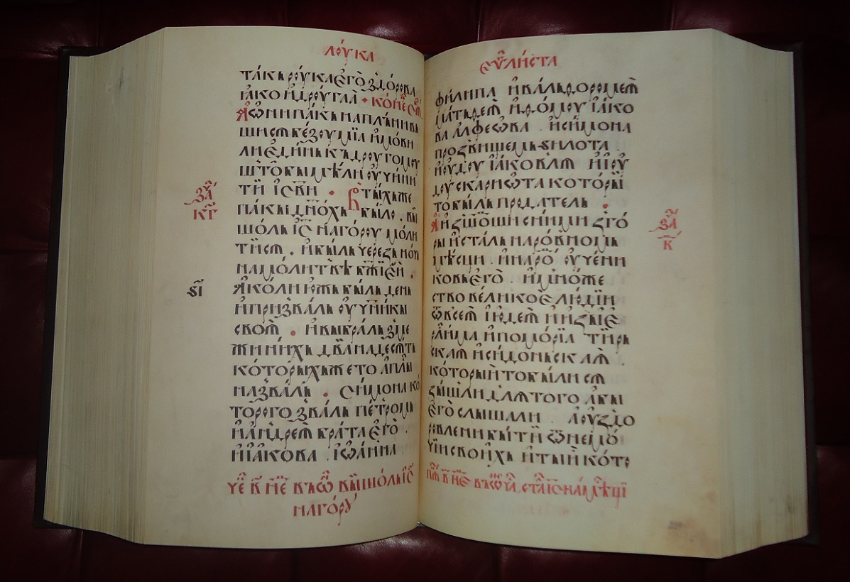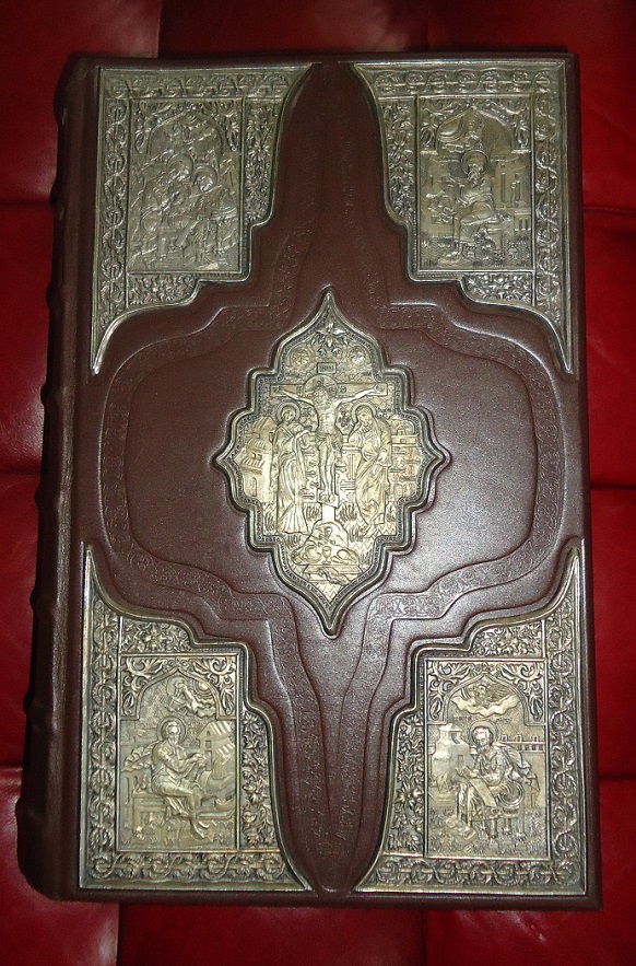 В кожаном переплёте. Золотые страницы есть.