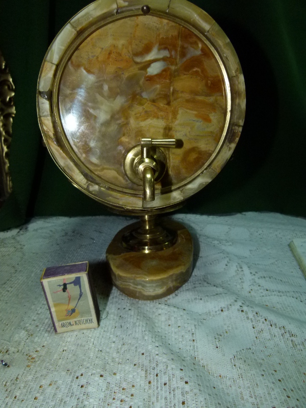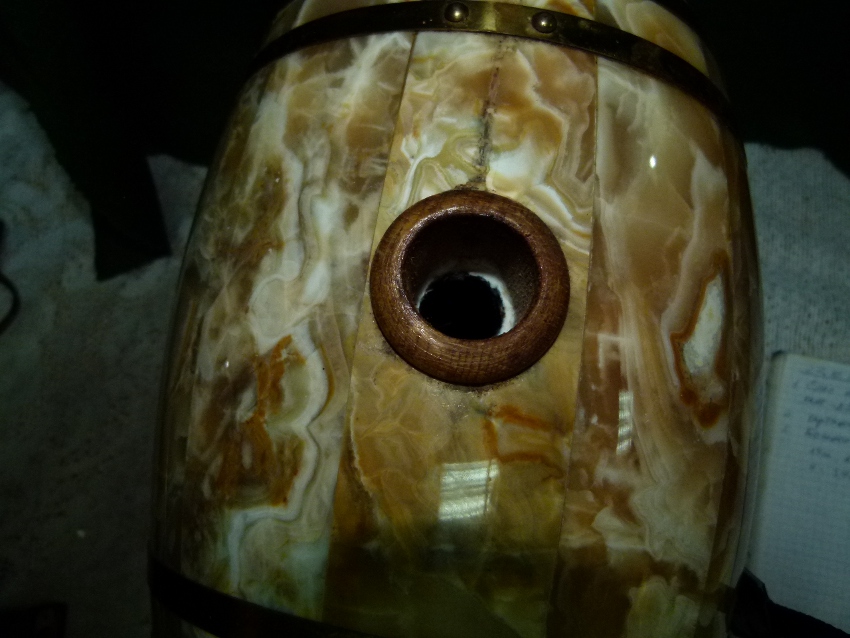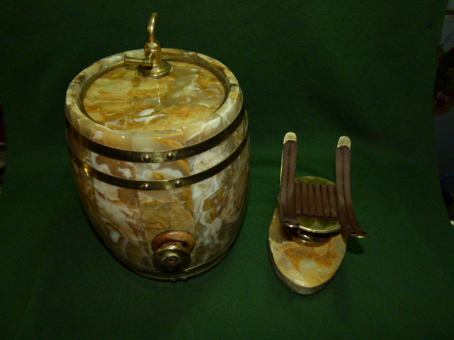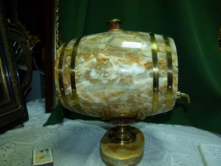 Оникс натуральный, латунь, торец, d - 160 мм. н - бочонка - 240 мм. н - на подставке - 300 мм. V - 5-6 л. m - 12.5 кг. 35.000 р.