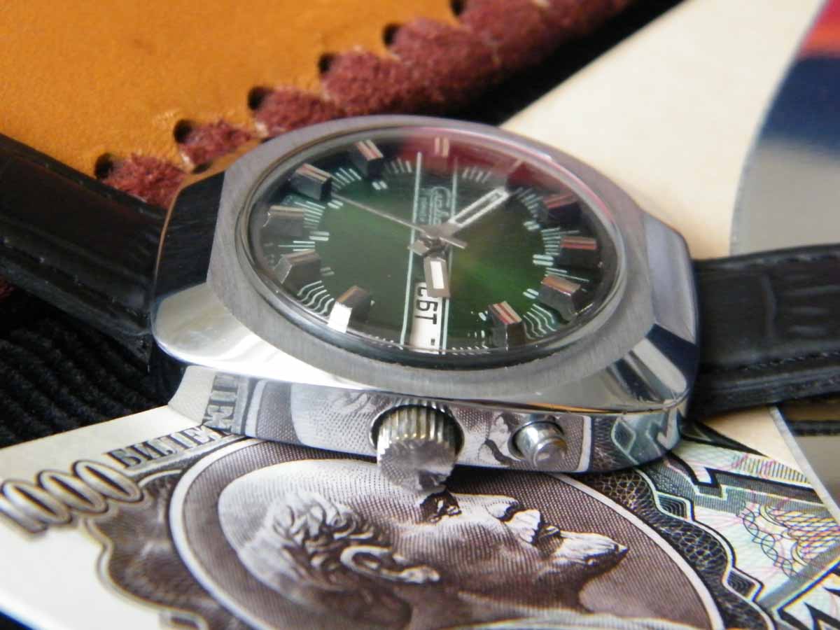 Часы 18 лет не носились, хороший внешний вид, не полировались, не чистились, не открывались, по крайней мере за последние годы, родной браслет не сохранился, поставил кожаный, но думаю, здесь нужен, все таки, стальной.