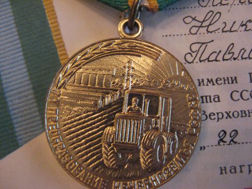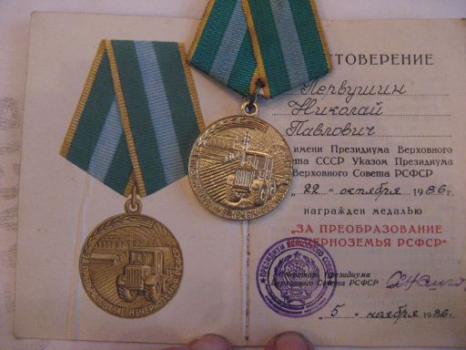 Медали Серп и Молот, За Трудовую Доблесть, За Трудовое Отличие, За Доблестный Труд в Великой Отечественной Войне,За Восстановление Предприятий Чёрной Металлургии Юга, За Восстановление Угольных Шахт Донбасса, За Освоение Целинных Земель, За Строительство БАМ, За Преобразование Нечерноземья РСФСР, За Освоение Недр и Развитие Нефтегазового Комплекса Западной Сибири, Ветеран Труда