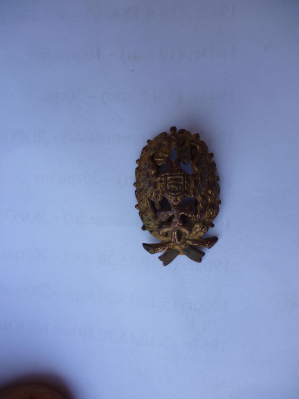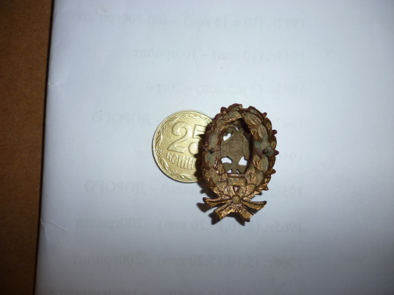 Найден при уборке.Сохран видно, золоченая бронза. Фото только такие . В подленности сомневаться не приходится, подскажите пожалуйста что за знак и минимальный ценовой ориентир. В дальнейшем возможна продажа. С ув.