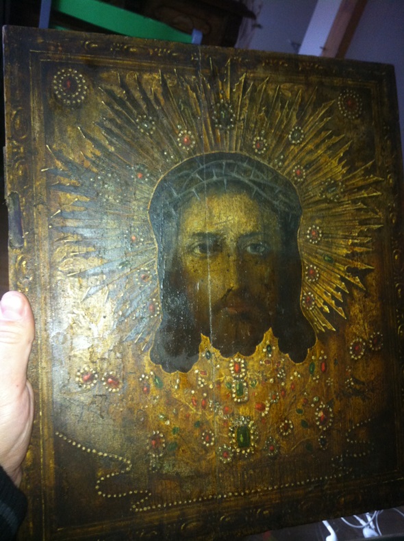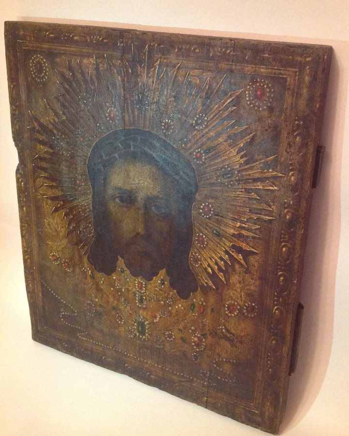 Re: Икона Спас Нерукотворный Старая. анастасья - 06 ноя 2013 22:15.52 × Мини профиль пользователя анастасья Сообщения: 840 Зарегистрирован: 25 июл 2013 21:25.21 Откуда: москва Статус: Не в сети - 06 ноя 2013 22:15.52 #4474608 благодарю.но это не сусалка.письмо очень тонкое как и слой левкаса.имитация камней выпуклая.