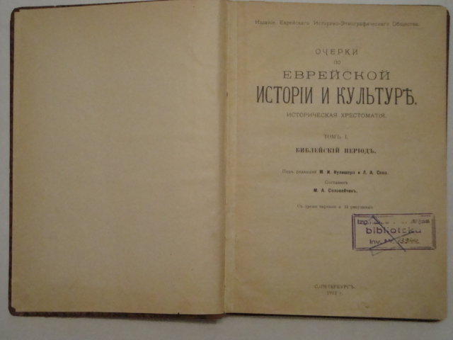 Издание Еврейского Историко-Этнографического Общества.