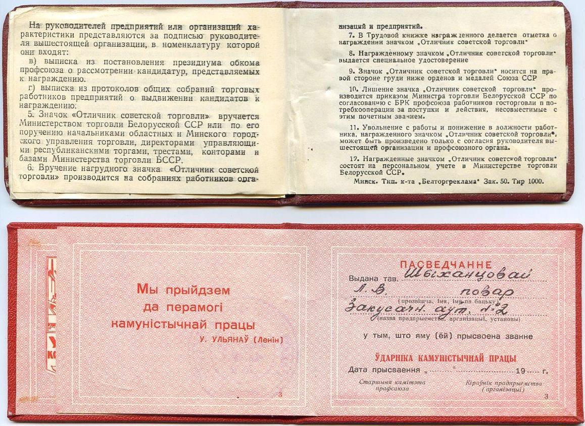 Отличник советской торговли БССР + УкЗ...