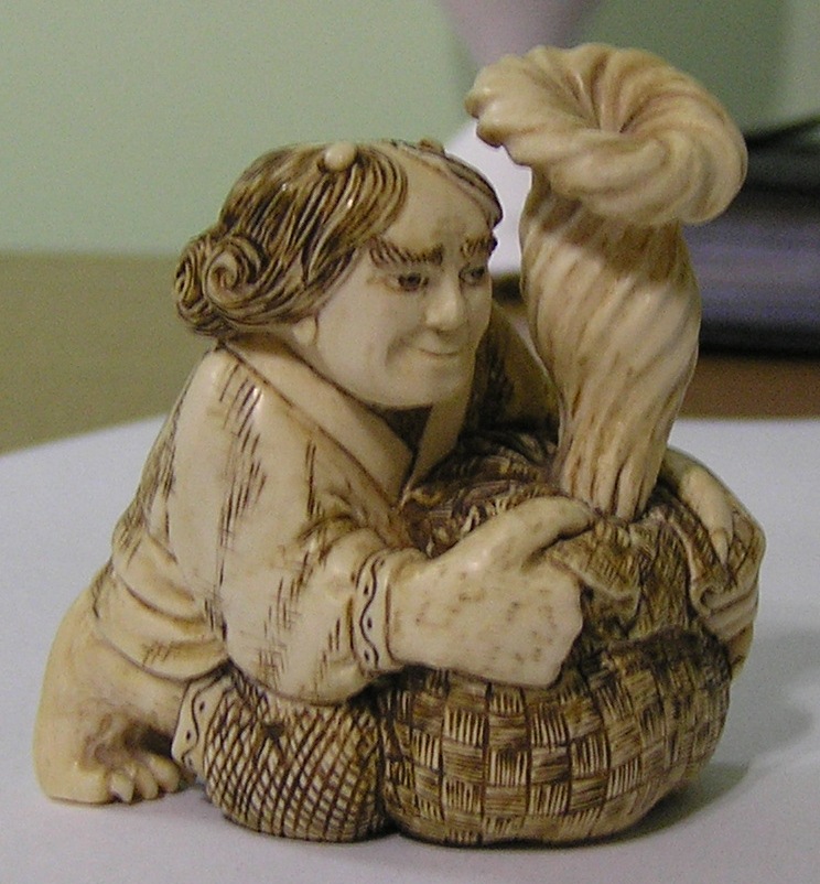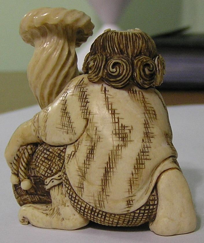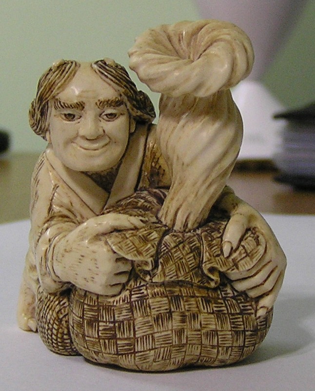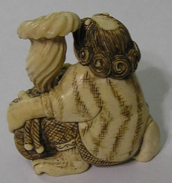 Материал - слоновая кость . Сюжет : бог ветра выпускает ветер из мешка . . Высота 5,5 см ширина 5 см. Предложите .