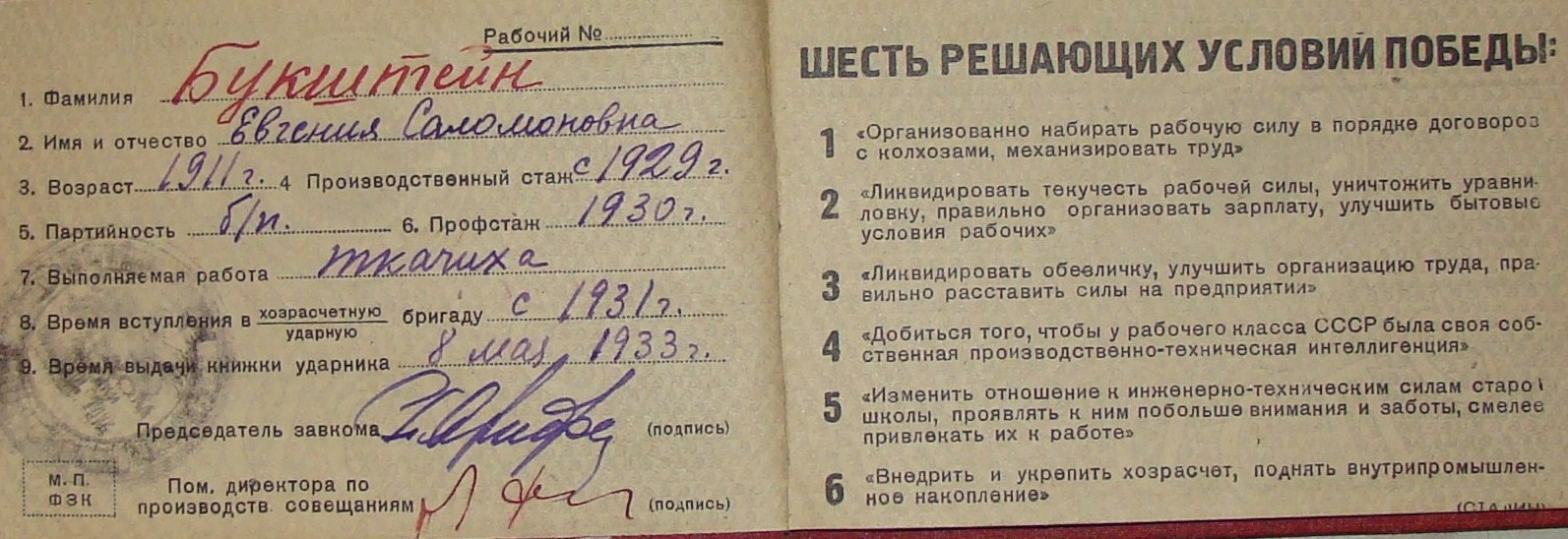 книжка ударника 1932г. elena72 - 28 ноя 2013 23:19.23 × Мини профиль пользователя elena72 Сообщения: 3663 Зарегистрирован: 07 мар 2013 19:48.42 Статус: Не в сети - 28 ноя 2013 23:19.23 #4509645 книжка ударника 1932г.шесть решающих условий победы.13 см на 9 см.предлагайте. Фото