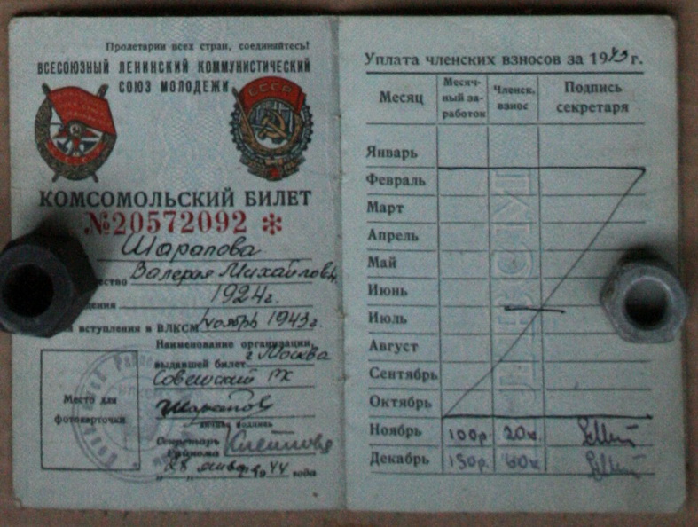 На последней странице наклеена зелёная шефская марка 1944 30коп.
