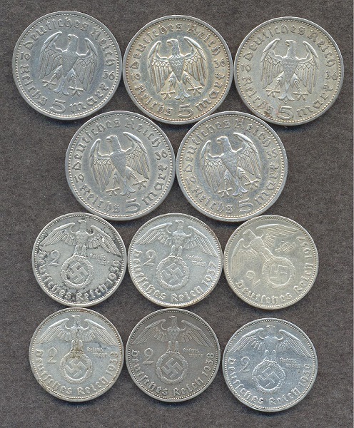 5 марок Гинденбург - 5шт