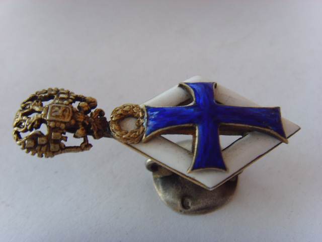 Знак университетский, фрачник! Серебро, размер 40х20мм, поверхностные сколы синей эмали.