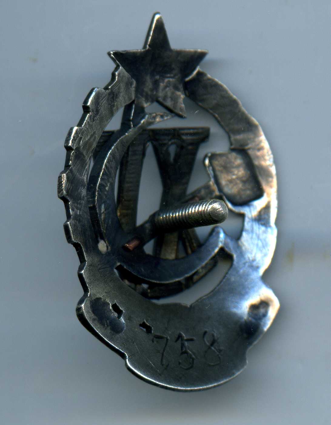 В середине цифр эмаль аккуратно подмазана и заполирована. Гайка, думаю, не родная - по резьбе тяжело идет, силу применять страшно. Клейм нет, номер 758.