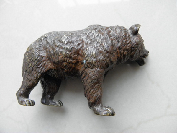 Бронзовый мишка. Родная старая краска. Тонкая прочеканка.