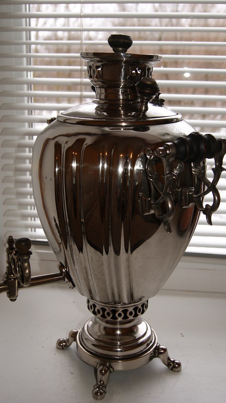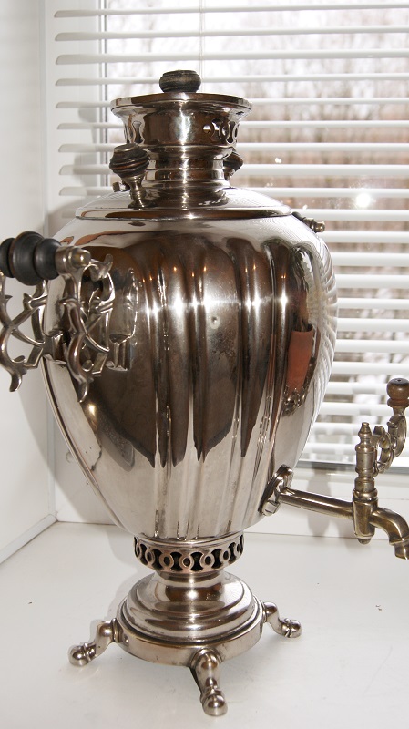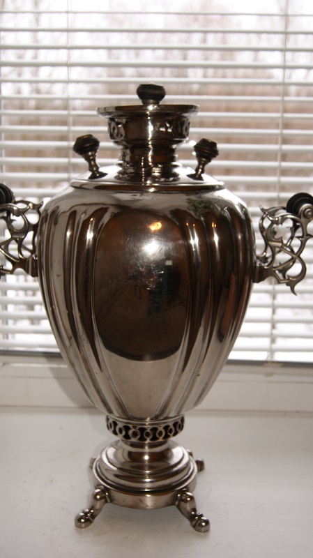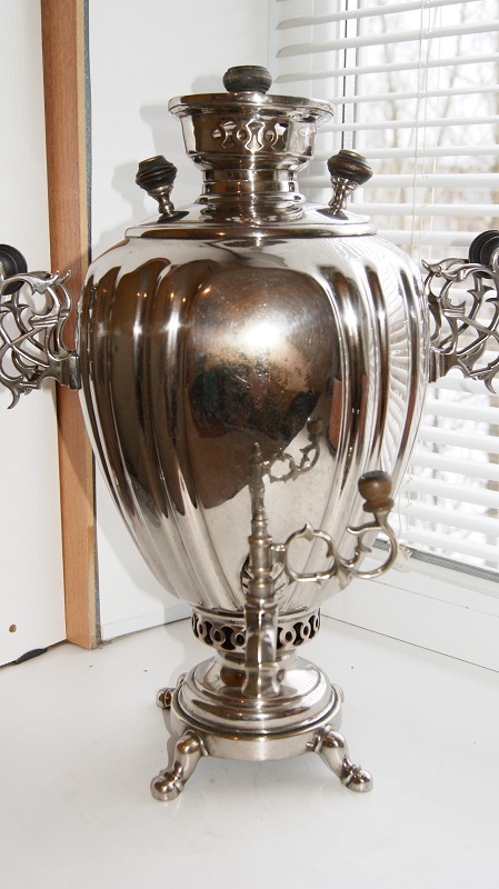 Вот такой самоварчик.Можно сказать очень не плохое состояние.никель возможно вторичный,но крепкий.Нигде не шелушится и не отстает.Внутри как новый,накипи совсем нет.пользовались им повидимому совсем немного.Будут вопросы,пишем спрашиваем.С ценой чуть позже.