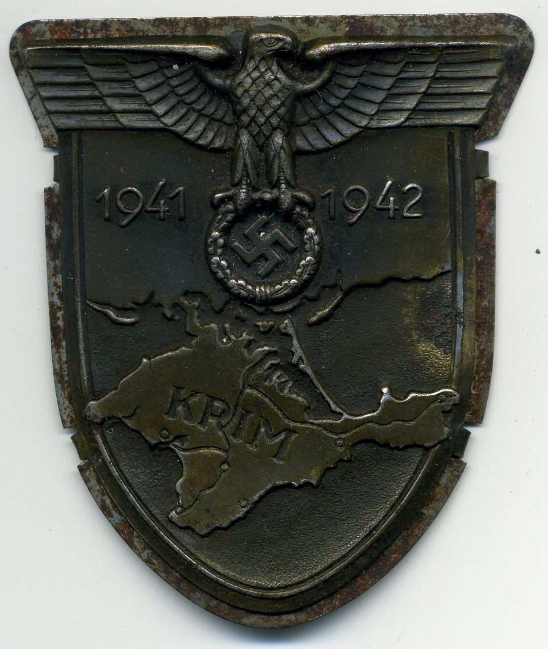 Щит Крым. Производитель Фридрих Орт. Редкий тип на боковых усах. Родной сбор. Клеймо на металле!