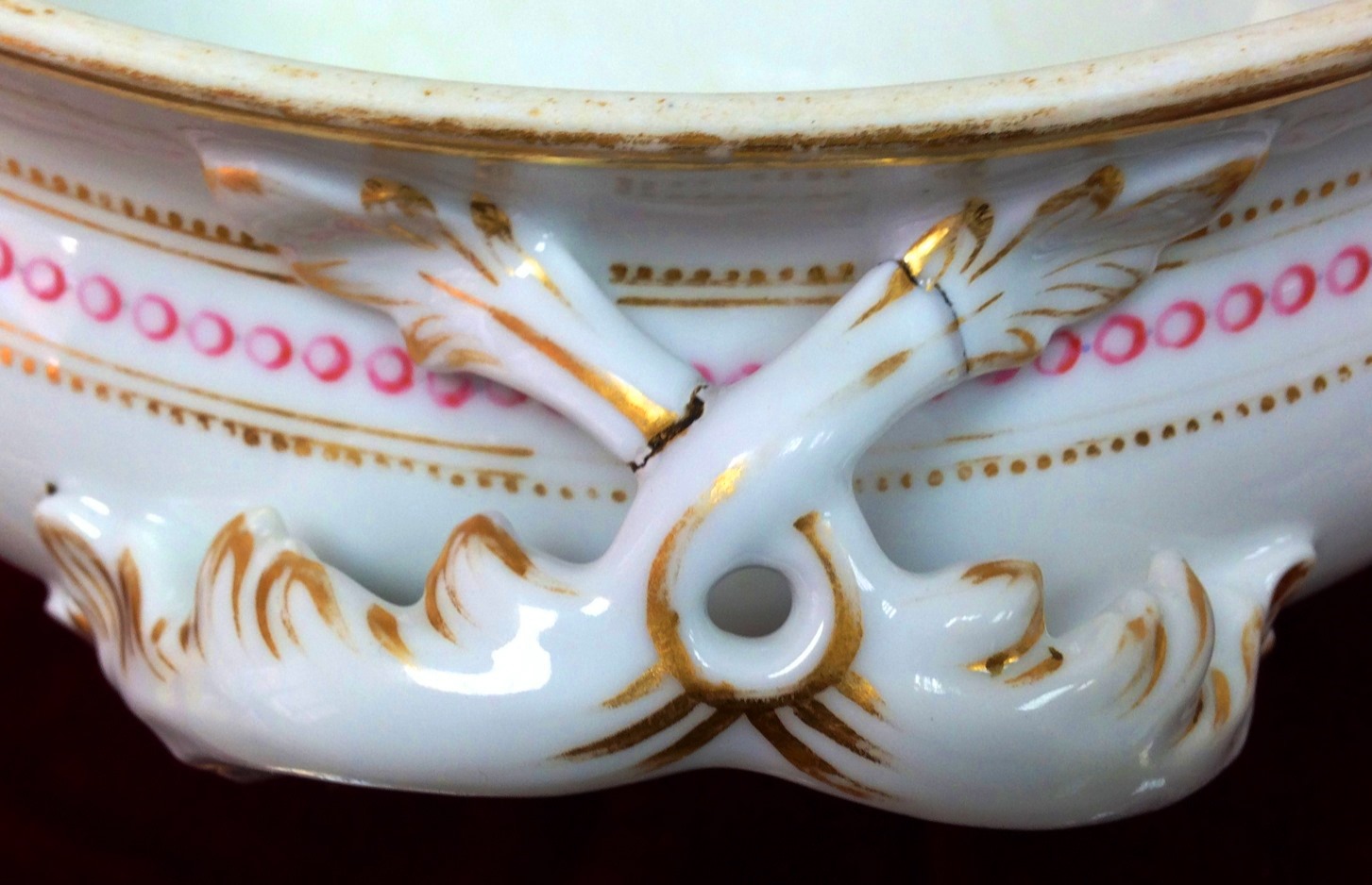Есть трещины на ручках. Две из них похожи на заводской дефект(см. фото)
