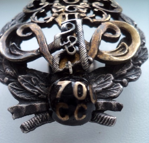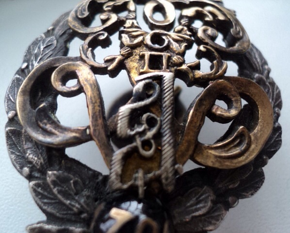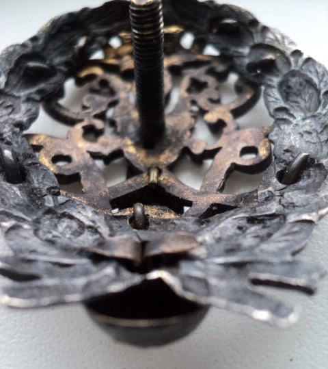 На комиссии. Середина новодельная, но из серебра (то, что в золочении), шарик внизу тоже. Предлагайте.