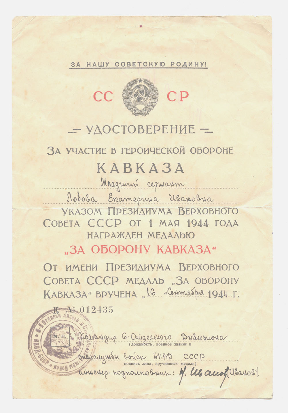 Приложение: 1. Приказ НКВД №002578 от 23.11.42 г. с приложениями».
