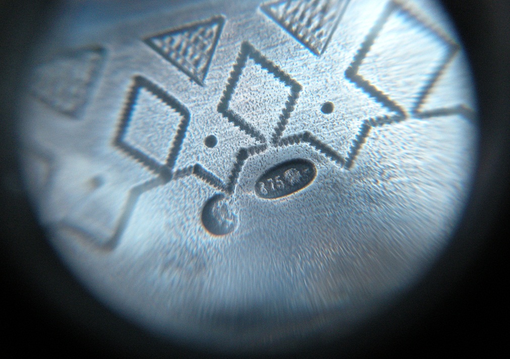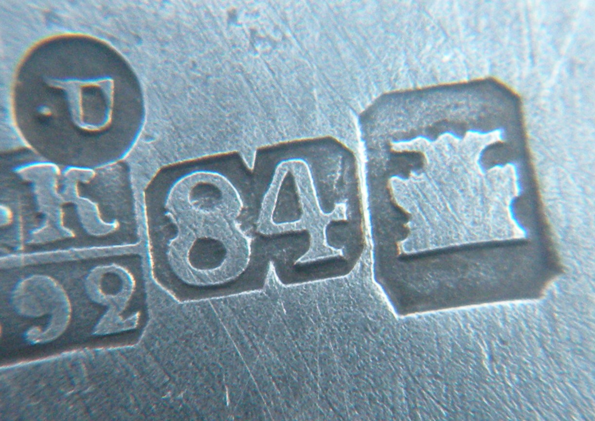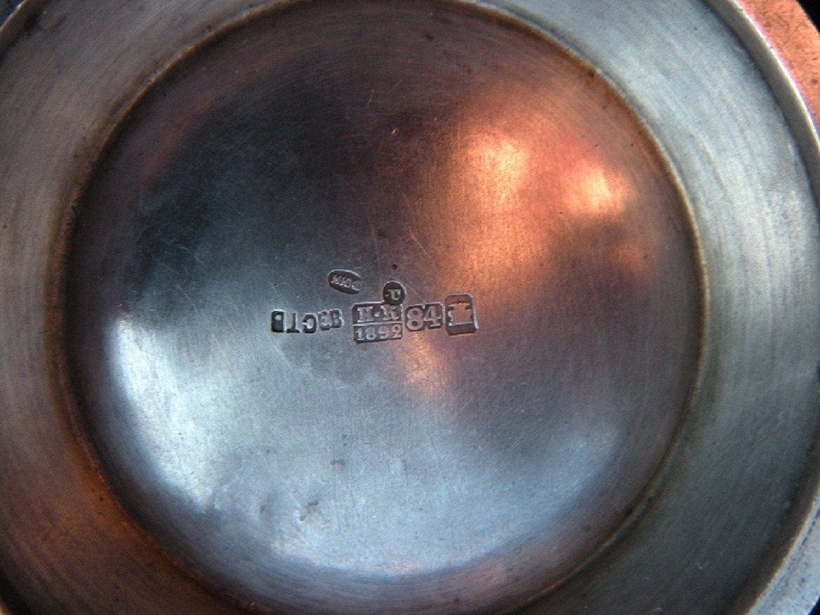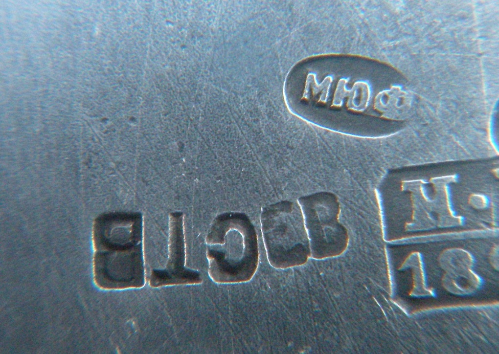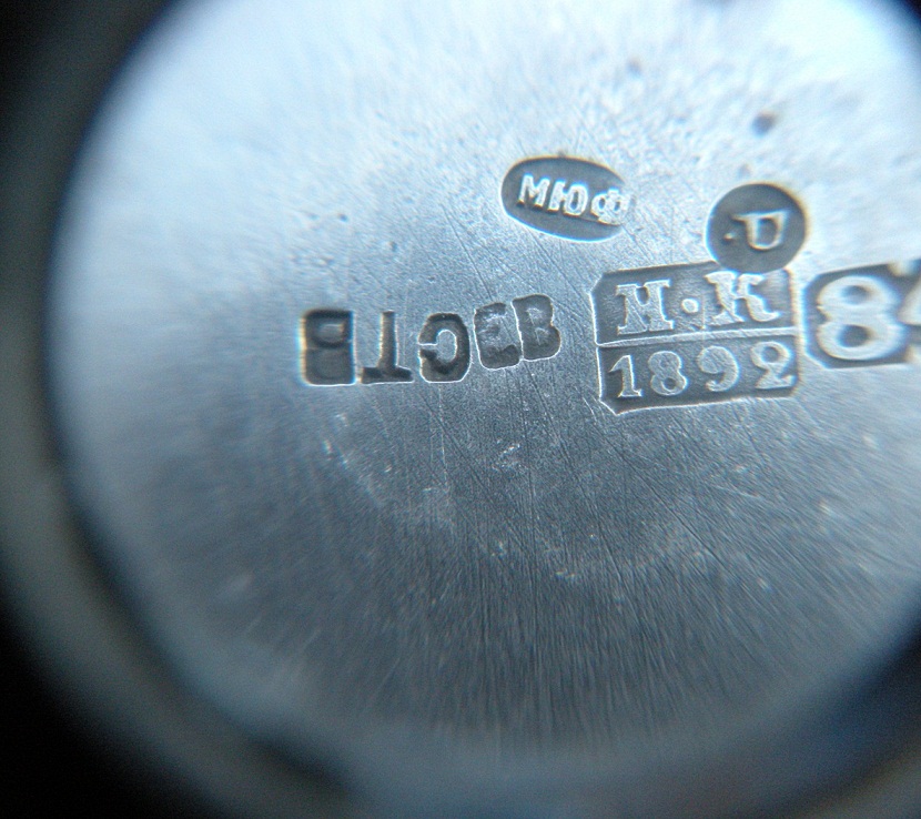 если не обращать внимание на некоторую нестыковку дат и отбросить излишнюю подозрительность, то клейма на предмете читаются примерно так: