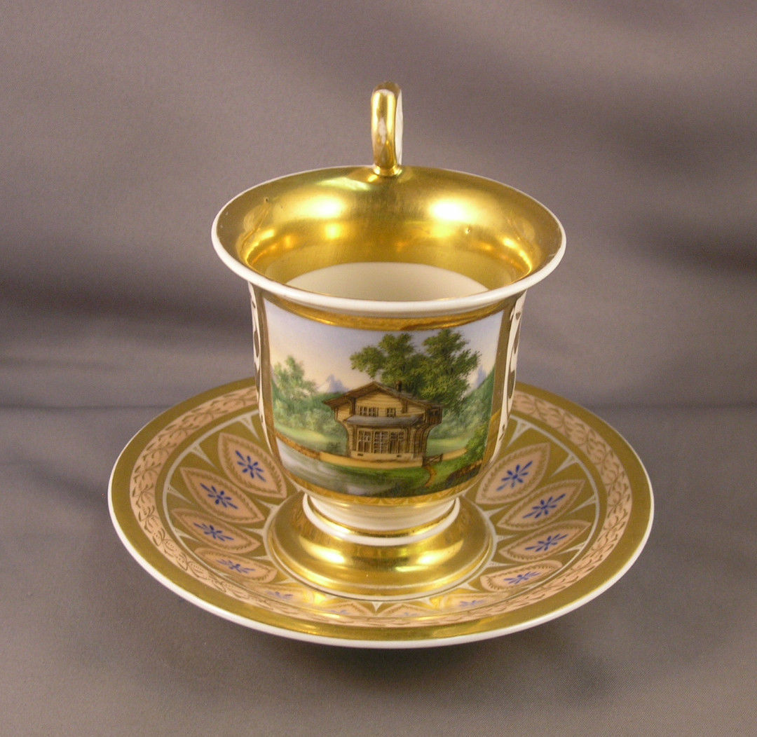 Чайная пара около 1860-х - 70-х годов, ручная роспись.