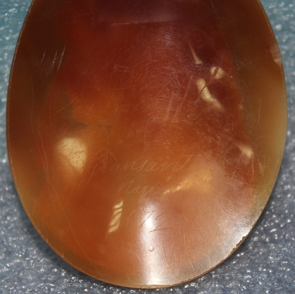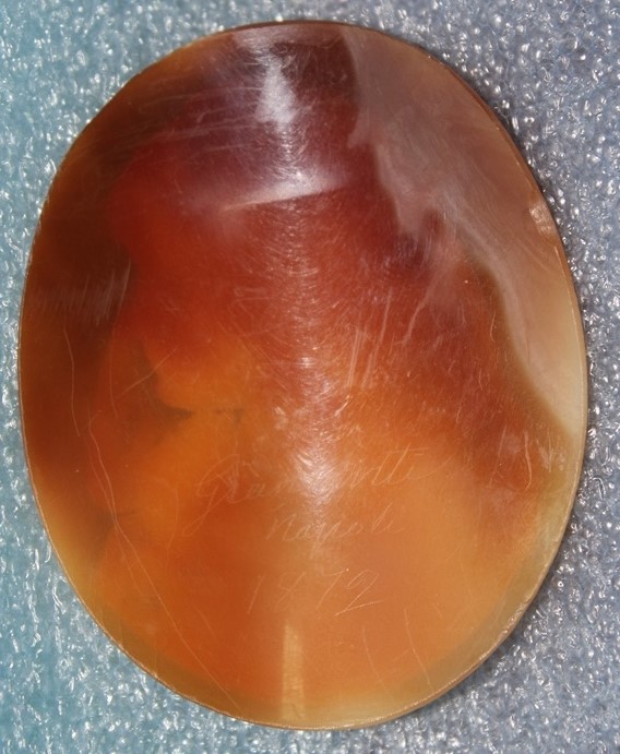Работа вроде неплохая.Размер 57 х 74 мм, сзади нацарапано:GIANSANTI NAPOLI 1872. в инете нашел только мотоциклиста, фотографа и т.п. с такой фамилией. Подскажите пож-та из какого материала сделана камея ( не совсем похожа на раковину, больше напоминает черепашью кость), и примерную стоимость. Может кто знает и автора?