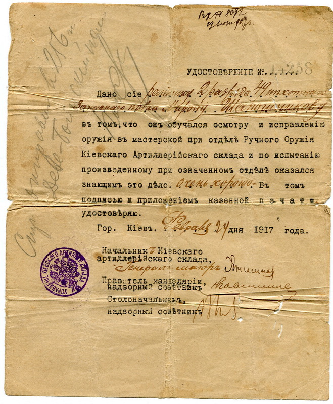 Удостоверение на оружейника. 1917г. v.Kihchick - 05 сен 2014 07:46.19 × Мини профиль пользователя v.Kihchick Сообщения: 7734 Зарегистрирован: 29 мар 2010 20:12.21 Статус: Не в сети - 05 сен 2014 07:46.19 #4582953 Надрывы на сгибах.Время.... Фото Куплю адрес-календари v.Kihchick@mail.ru