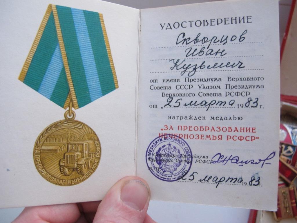 Медали Серп и Молот, За Трудовую Доблесть, За Трудовое Отличие, За Доблестный Труд в Великой Отечественной Войне,За Восстановление Предприятий Чёрной Металлургии Юга, За Восстановление Угольных Шахт Донбасса, За Освоение Целинных Земель, За Строительство БАМ, За Преобразование Нечерноземья РСФСР, За Освоение Недр и Развитие Нефтегазового Комплекса Западной Сибири, Ветеран Труда