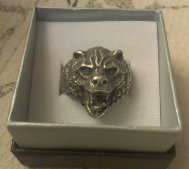 товарищу досталось вот такое массивное кольцо 88 пробы с изумрудными? глазами