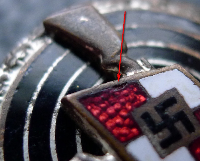 Красной стрелкой на фото отметил поверхностный микроскол красной эмали.