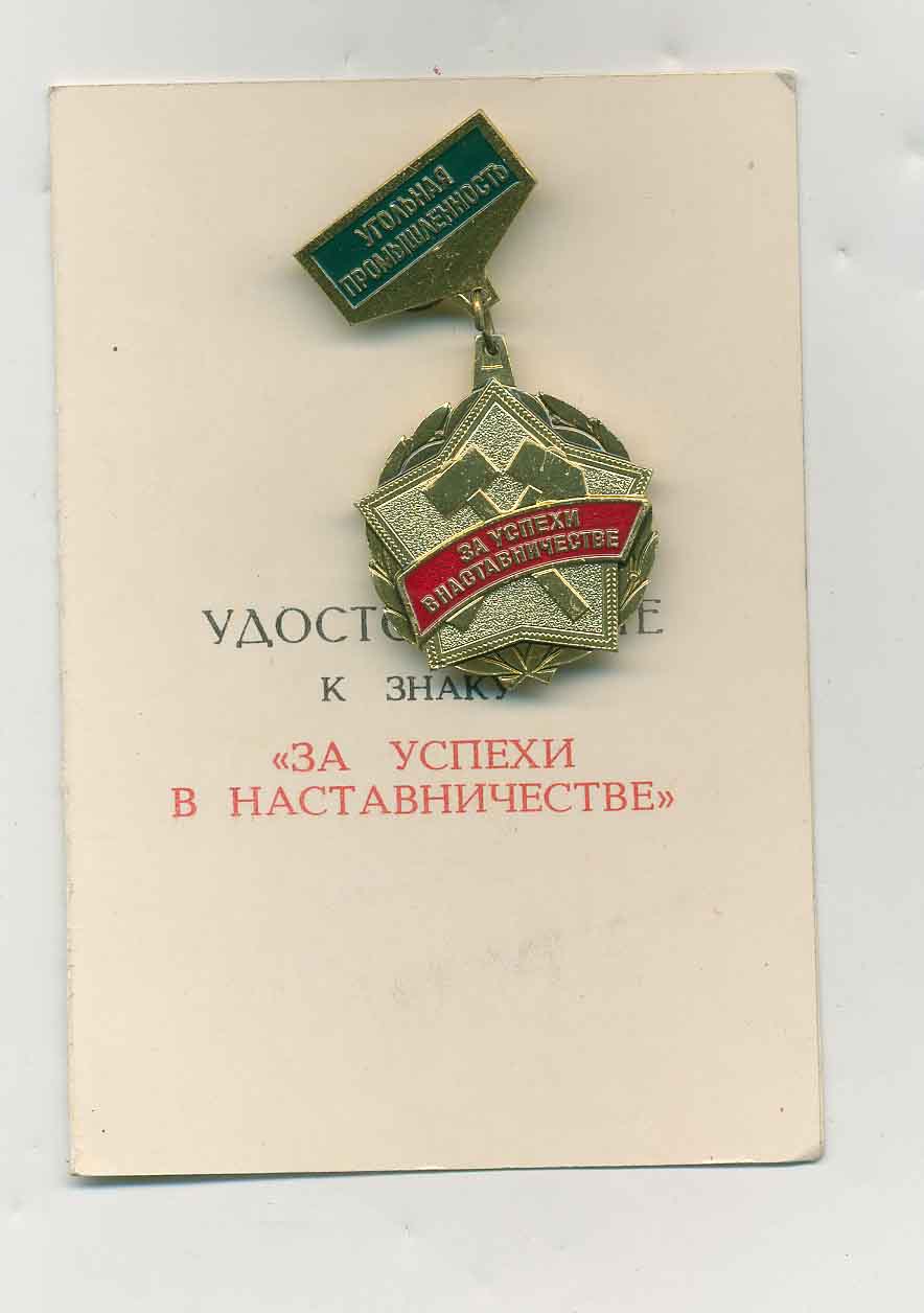 За успехи в наставничестве угольной промышленности