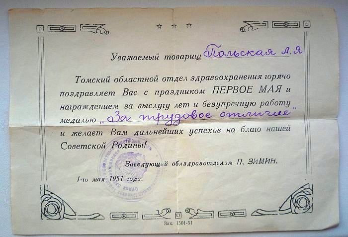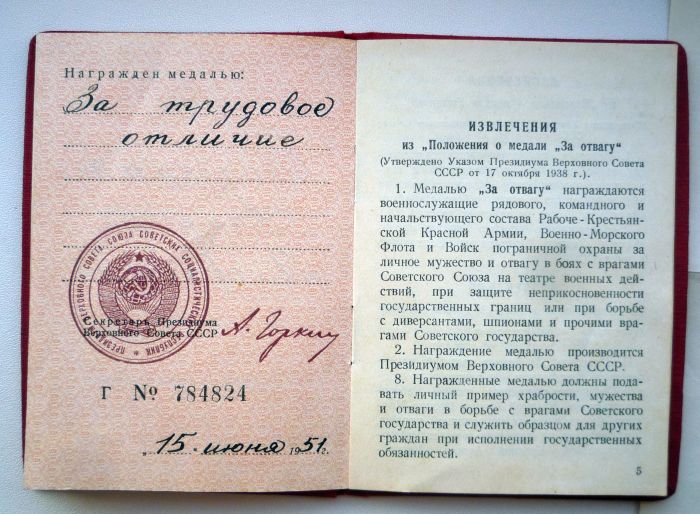 Медали Серп и Молот, За Трудовую Доблесть, За Трудовое Отличие, За Доблестный Труд в Великой Отечественной Войне,За Восстановление Предприятий Чёрной Металлургии Юга, За Восстановление Угольных Шахт Донбасса, За Освоение Целинных Земель, За Строительство БАМ, За Преобразование Нечерноземья РСФСР, За Освоение Недр и Развитие Нефтегазового Комплекса Западной Сибири, Ветеран Труда