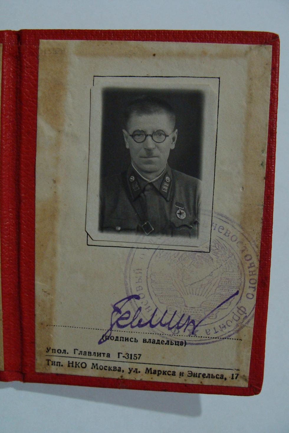 УЧАСТВОВАЛ В БОЯХ ПРОТИВ ЯПОНСКИХ САМУРАЕВ В 1938 Г. НА оз. Хасан.