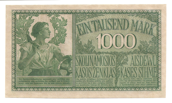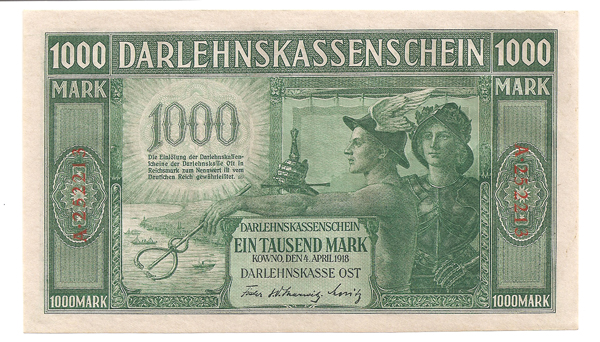 Вашему вниманию предлагаю банкноту 1000 МАРОК 1918 года КОВНО КАУНАС!!! ПРЕССОВОЕ СОСТОЯНИЕ UNC!! РЕДКАЯ! НОМЕР КУПЮРЫ А-252216!!!