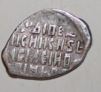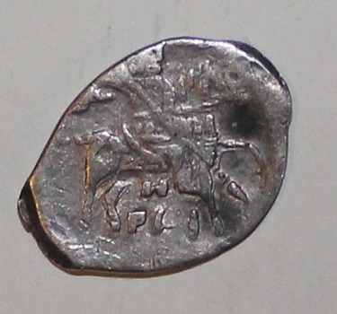 Новгородская копейка Василия Шуйского. Штемпели близки к №27 в каталоге С. Гароста = 1608-й год, с оценкой порядка 30 долларов.