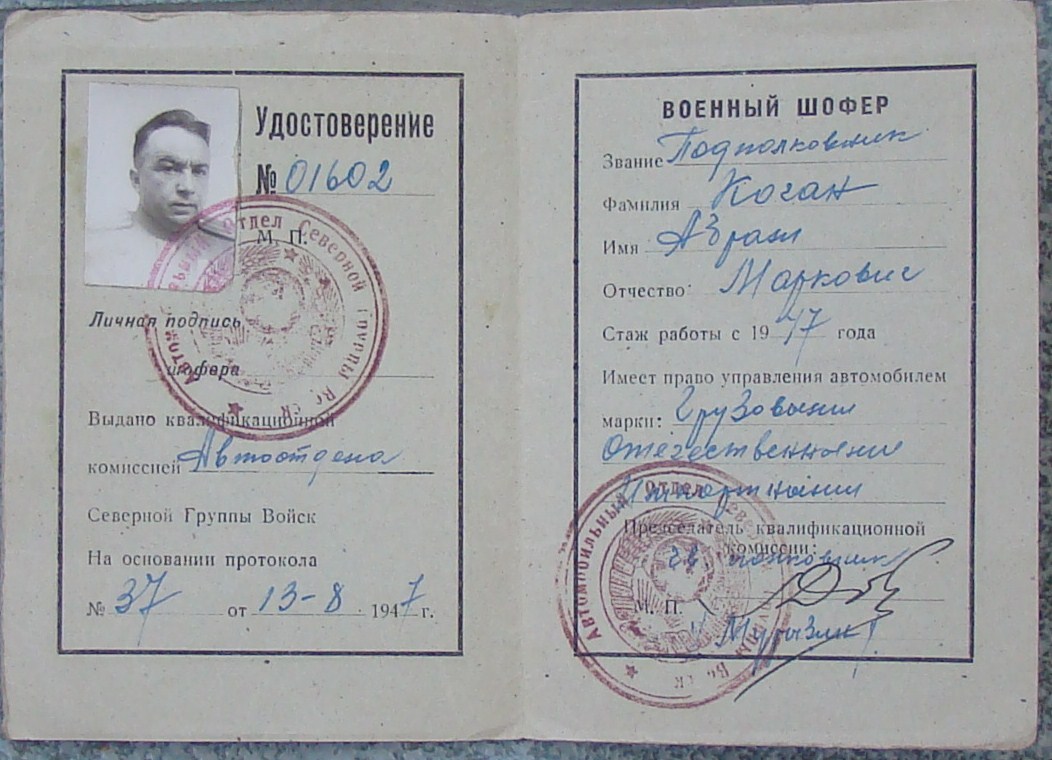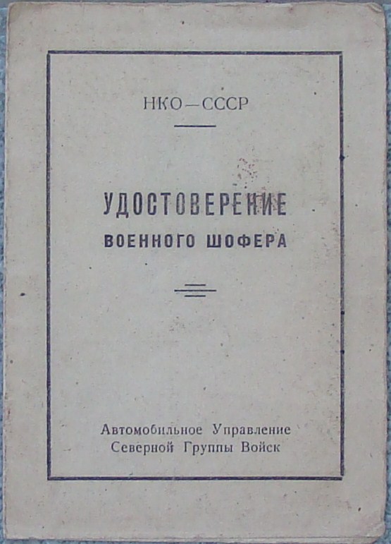Удостоверение военного щофера НКО-СССР 47Г