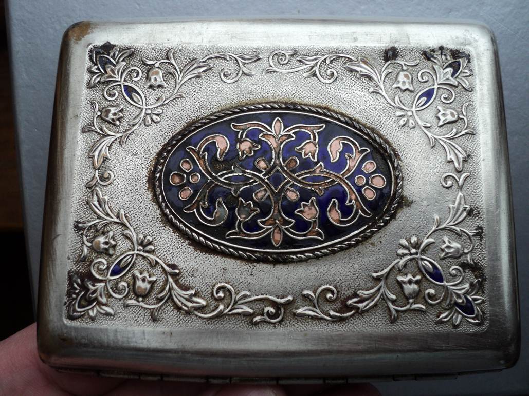 Портсигар железный. Накладка с эмалью.
