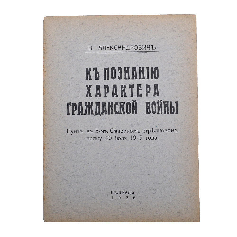 Белград, 1926 год. Оригинальная брошюра, посвященная бунту в 5-ом Северном стрелковом полку 20 июля 1919 года. Размер 11,5*15,2 см. Объем 28 страниц. Обложка мягкая. Сохранность отличная, листы даже не были разрезаны. Гарантия подлинности.
