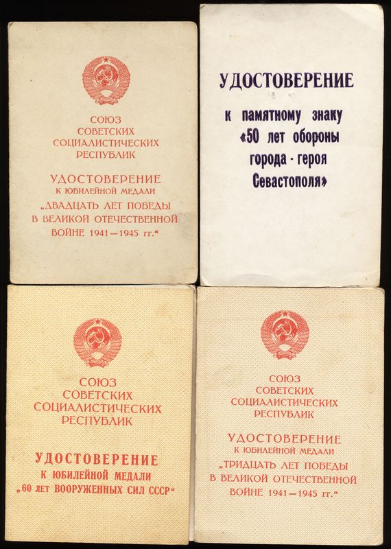 Орденские книжки, удостоверения к медалям, Грамоты, удостоверения личности, извещения, справки и другие документы, литература